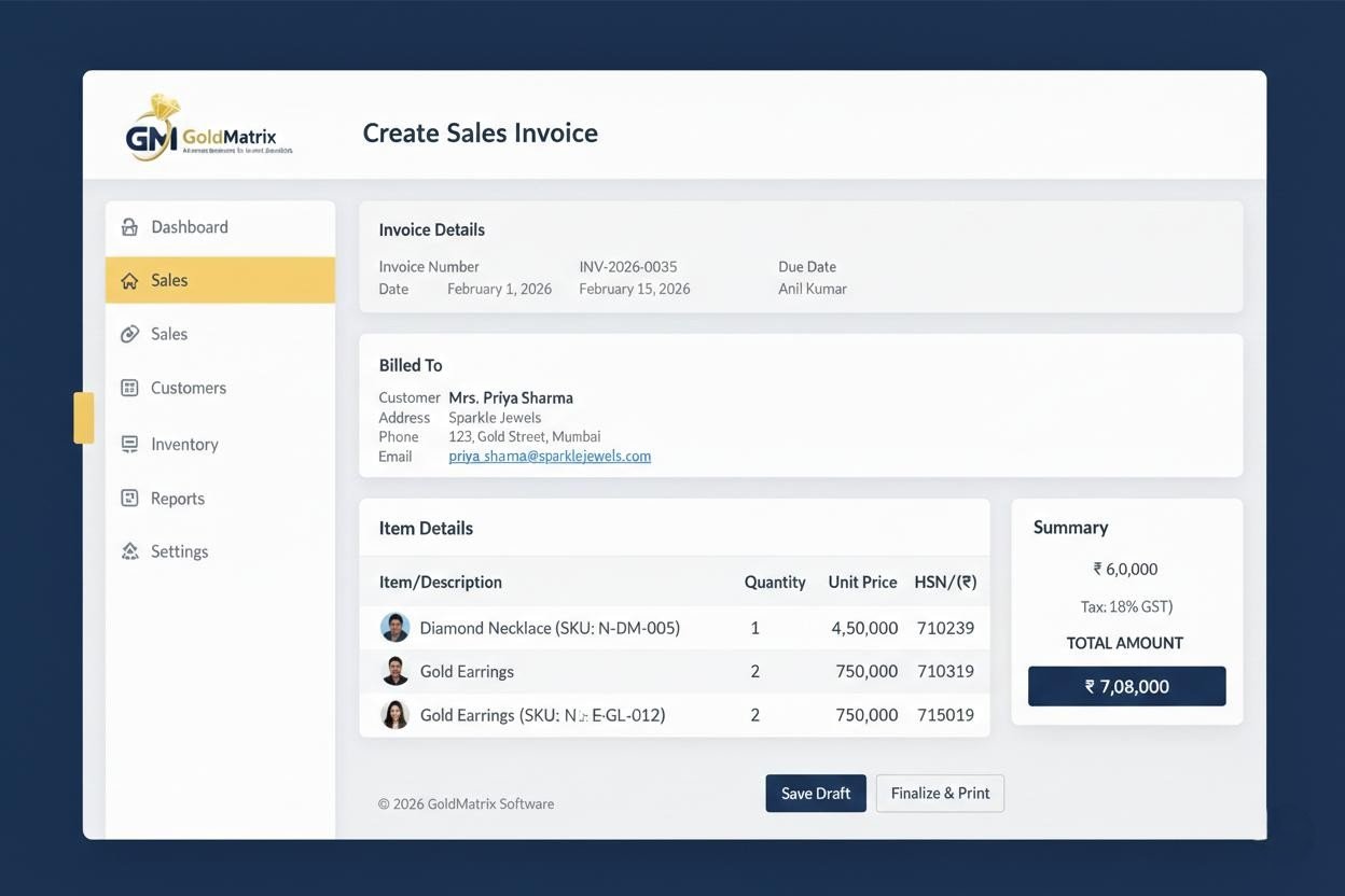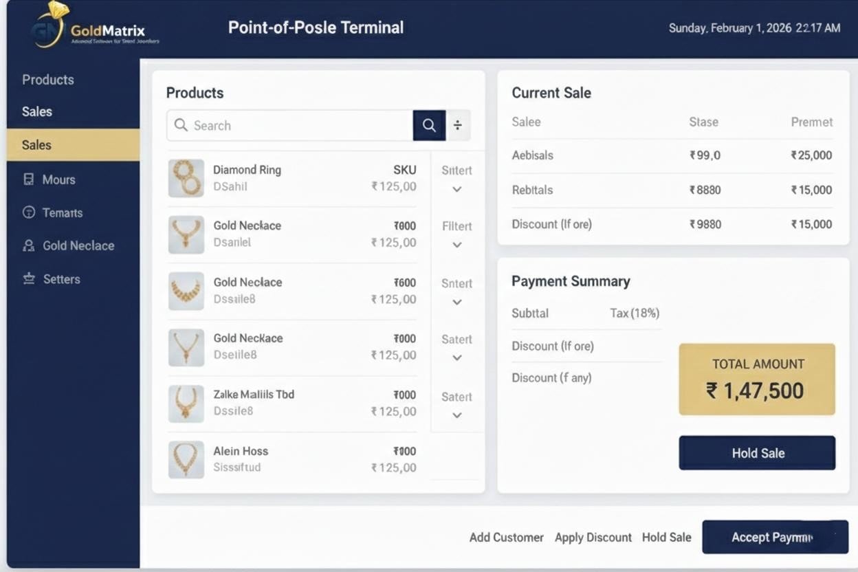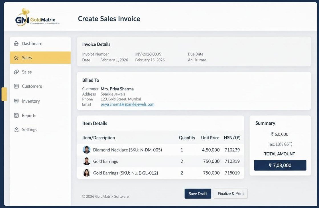 Gold Matrix Jewellery Software is built to support the day-to-day operations of jewellery retail stores and showrooms. It helps businesses maintain control over stock, sales, and customer transactions while ensuring smooth and efficient store management.