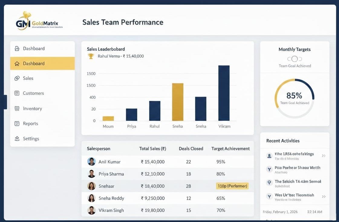 Gold Matrix is a purpose-built jewellery ERP designed to simplify complex operations and deliver measurable business outcomes. Our platform brings inventory, manufacturing, sales, accounting, and reporting together in one intelligent system.